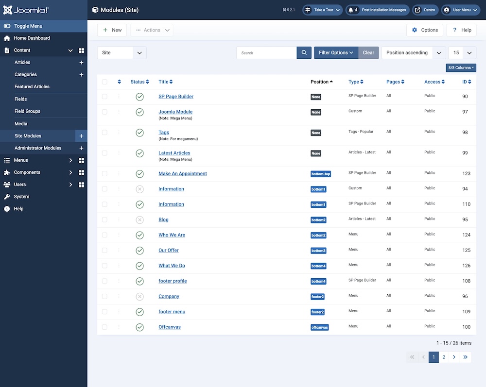 Apart from the few dozen extensions that are part of the quickstart installation (developed by Joomla and JoomShaper team), you can find thousands of additional extensions developed by third parties on the web. Most of these are listed on extensions.joomla.org, the Joomla Extensions Directory (or JED, as it is fondly called by the Joomla community). Anytime you can install additional modules, plugins or components. But remember the main rule: less is more, also in the security area.