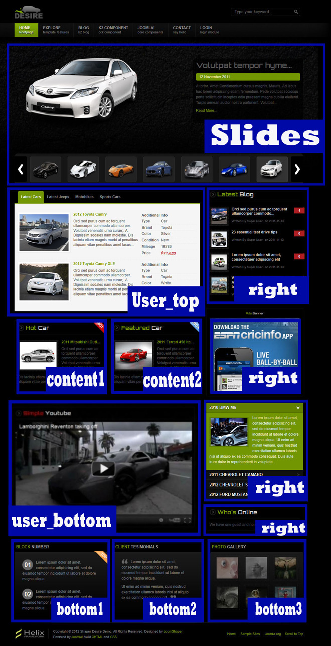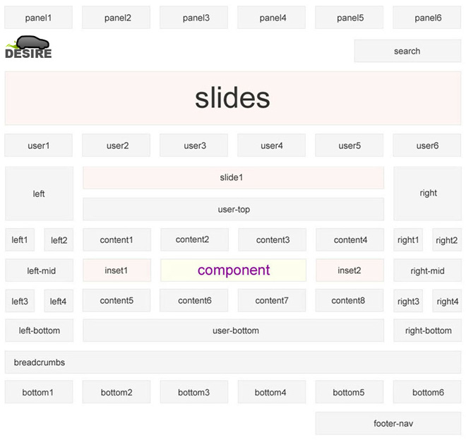 The screenshot below highlights the module positions available in “DESIRE” template.