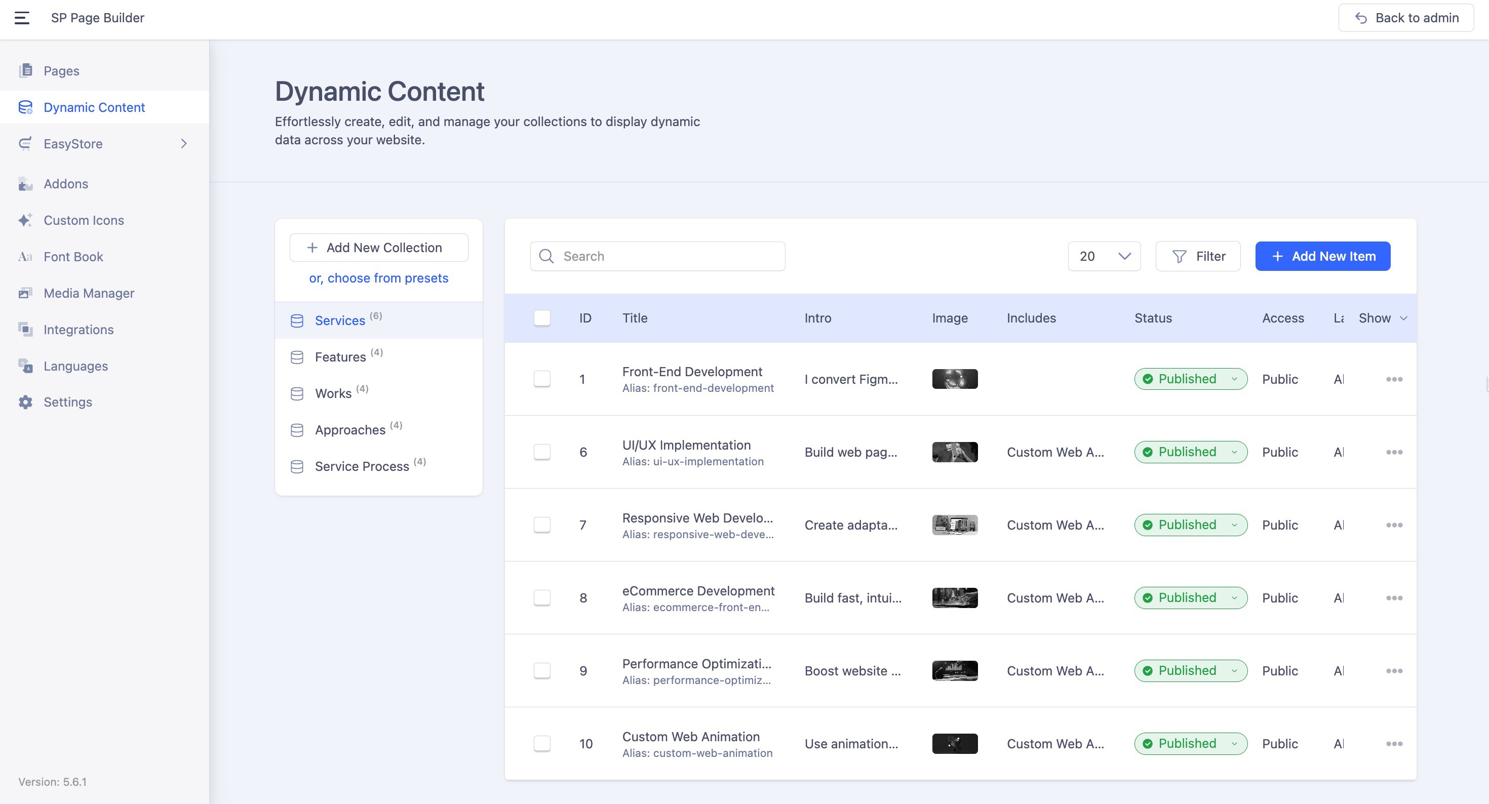 To add new items to the existing Collections, click on the “+ Add New Item” button.