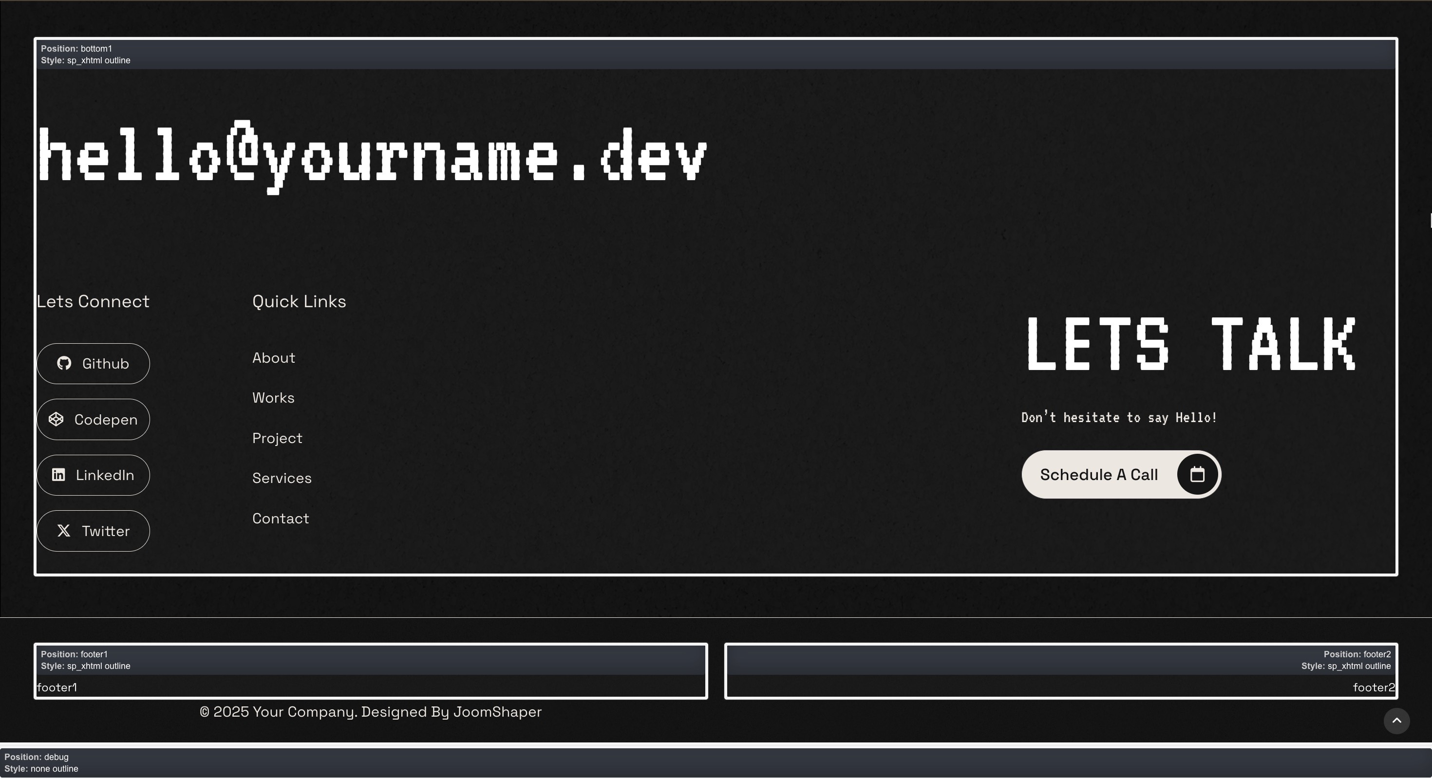 At the bottom of the template (that is footer position), we used one SP Page Builder module (footer1)