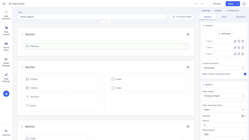 There are two different home variations, both were created using the SP Page Builder Pro component. The home variations are: