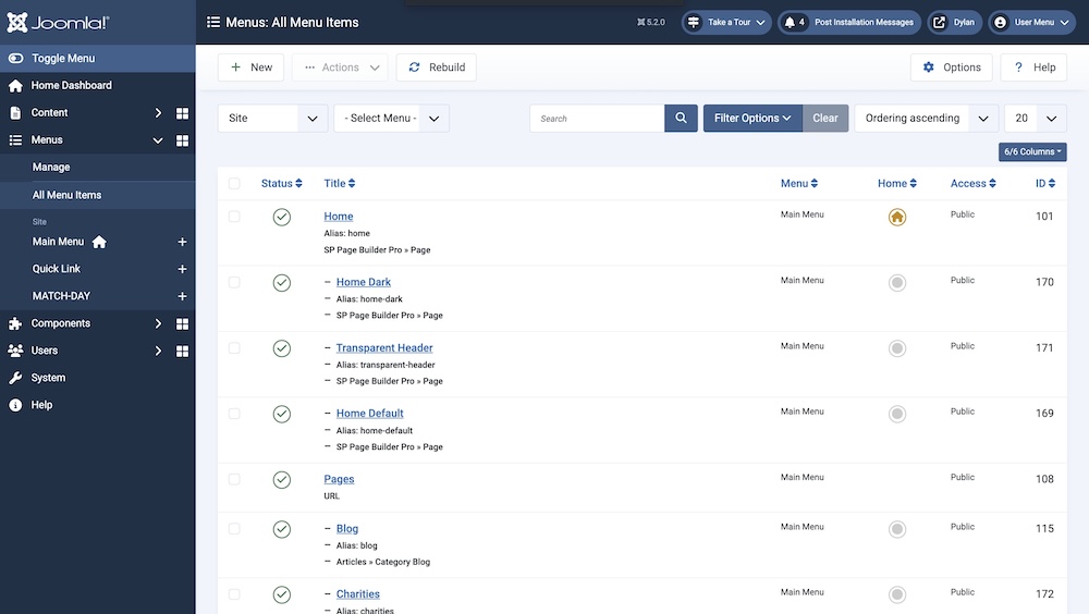Home Pages in the Menu