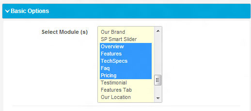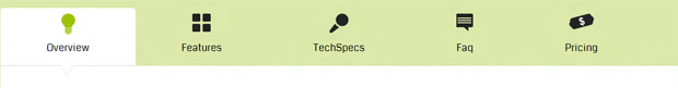 SP Tab module presents content in tab format. From Basic options we were selected “Overview”, “Features” and “TechSpecs” , “Faq” and “Pricing” module for showing it.
