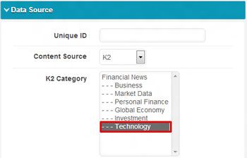 See the News Show SP2 configuration.We selected k2 category "Technology"