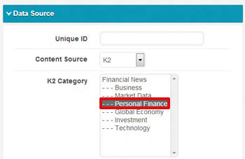 See the News Show SP2 configuration.We selected k2 category "Personal Finance"