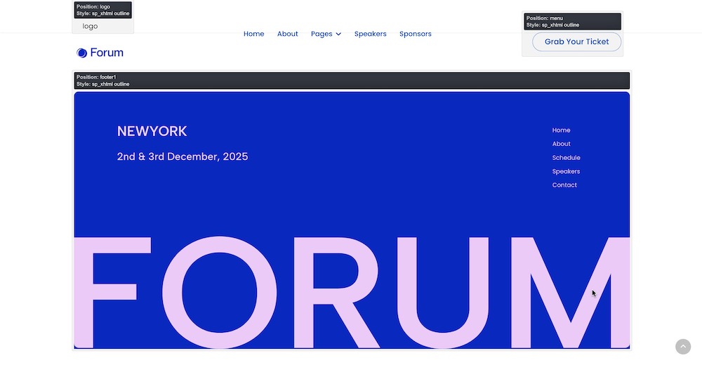 By default, Forum template's copyright note at the footer position is disabled. But you can enable the copyright note by Helix Ultimate’s frontend sidebar. Navigate to the Basic > Footer and activate the Copyright option. You can also change your Module Position and Feature Position and edit the Copyright Note.