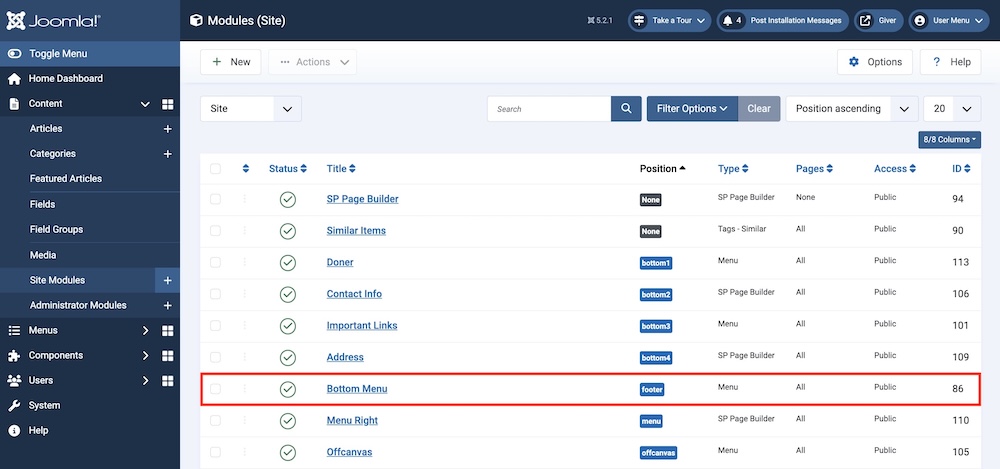 The bottom section of the template design was built using a single bottom row and 4 module positions, together with menu and SPPB modules.