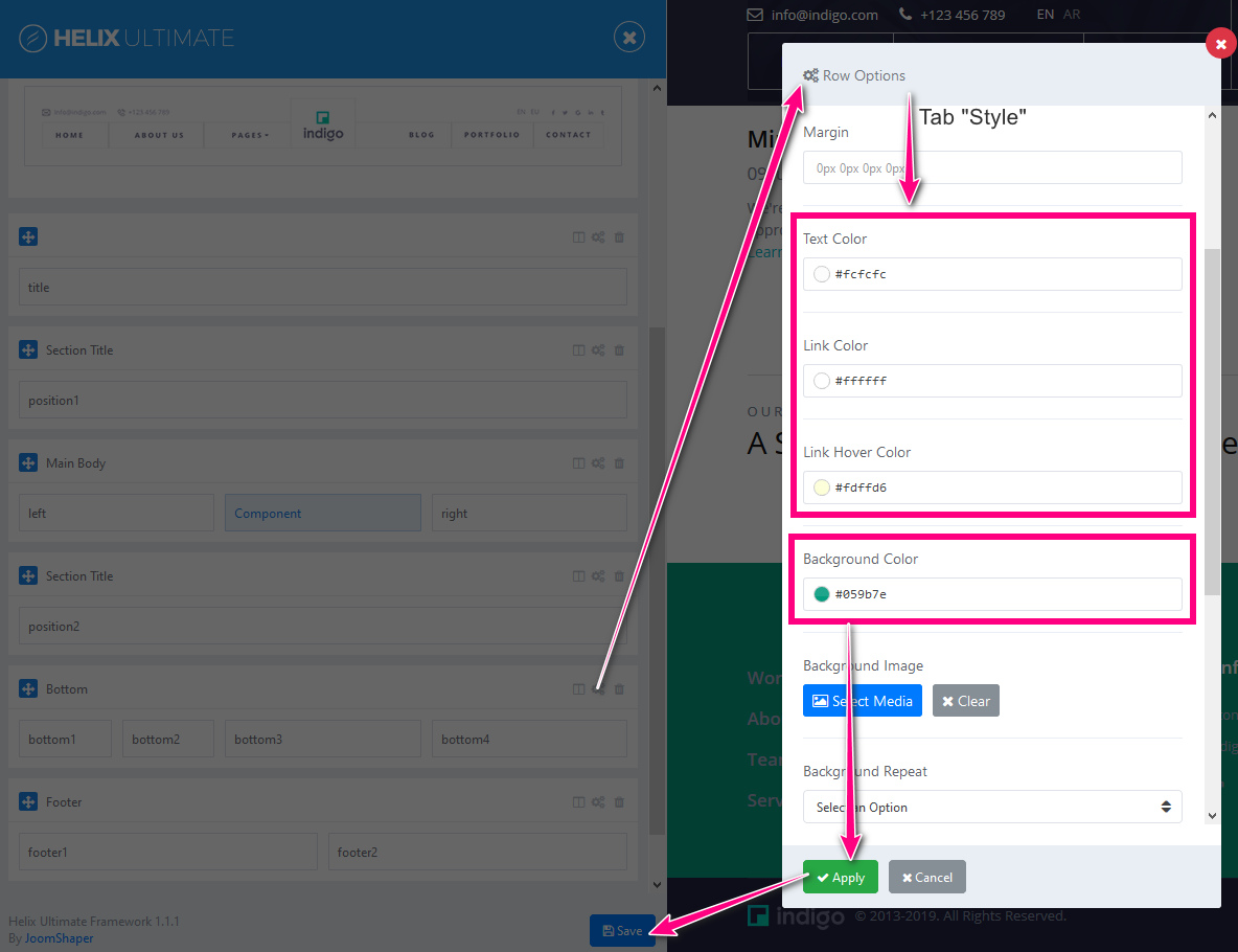 Do these same steps if you want to change the Footer background color or even use their background image.