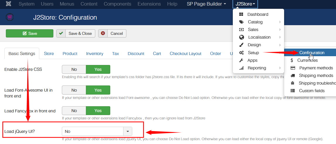 If you cannot save/edit articles with enabled SPPB Article integration - it's because there is a small conflict with default J2Store 3.x settings. Hopefully, it's easy to fix it:
