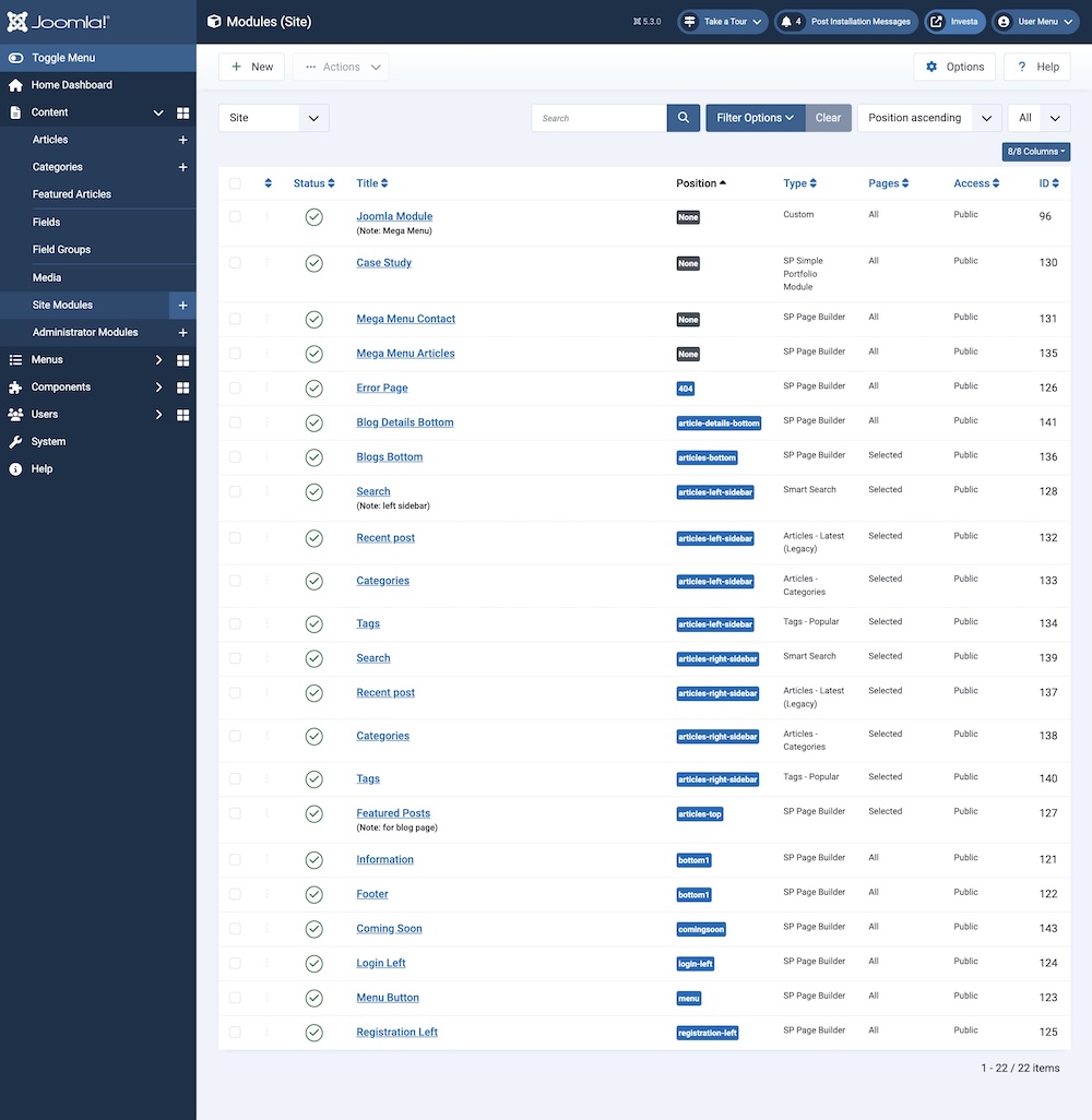 Apart from the few dozen extensions that are part of the quickstart installation (developed by Joomla and JoomShaper team), you can find thousands of additional extensions developed by third parties on the web. Most of these are listed on extensions.joomla.org, the Joomla Extensions Directory (or JED, as it is fondly called by the Joomla community). Anytime you can install additional modules, plugins or components. But remember the main rule: less is more, also in the security area.
