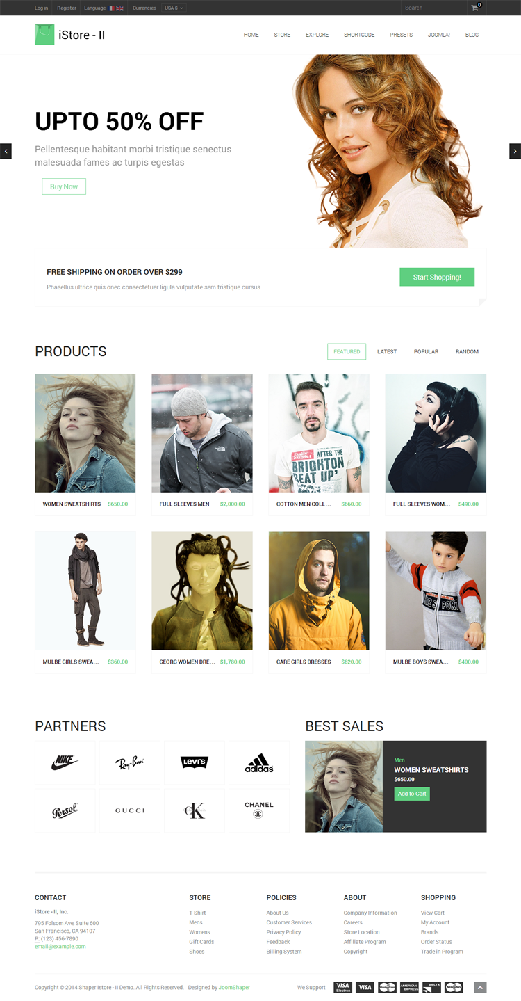 The following screenshot is the detail view of “istore-ii” Front Page.