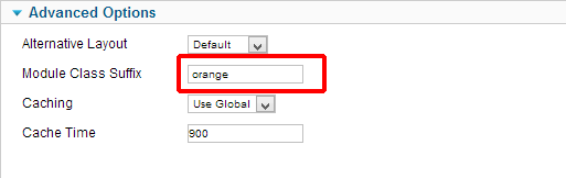 In advanced option we select Module Class Suffix as orange in variation orange. These variations come from custom html. In every variation we select different type of Module Class Suffix.