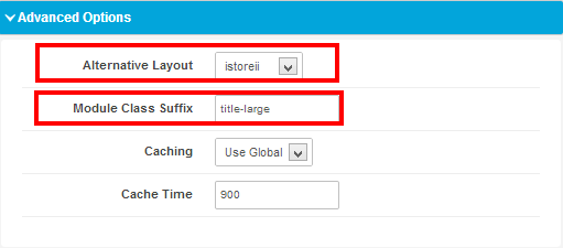 In advanced options we select the Alternative Layout by istore-ii & Module Class Suffix bytitle-large.