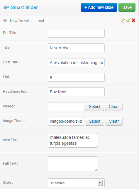 This awesome sideshow settings provide you to select the title, post title, readmore text and intro text. From here users will also able to select the image source. Here is another option for the thumb image also.