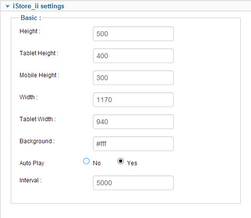 This awesome slideshow settings provide you to select the height, background color, auto play or Interval.