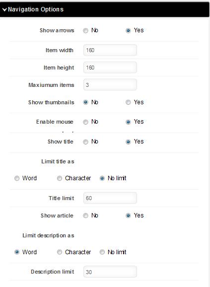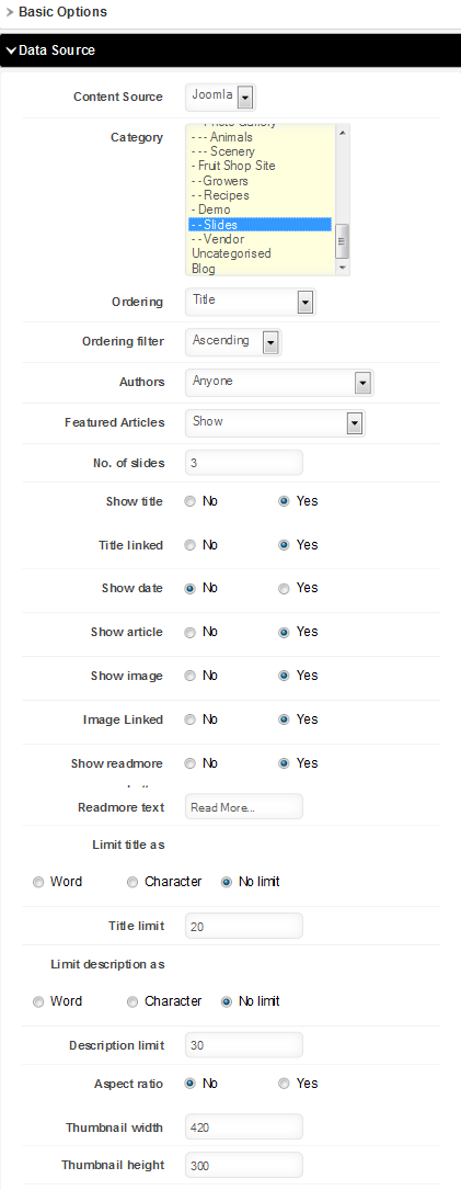 For image and text you must have a category. At least 3 Articles with images have to publish under this category The Image width and height must be 920px and 330px. Then select actual category from Data Source option .