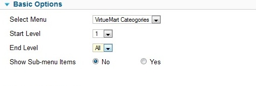This is Simply a Menu. Basic Options for Category “Menu” is: