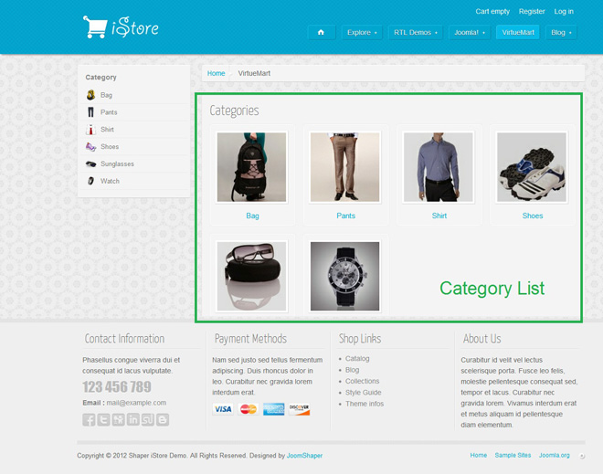 Then add menu Items. And Item image “ template /istore/images/stories/demo/ ’’ at this URL.
