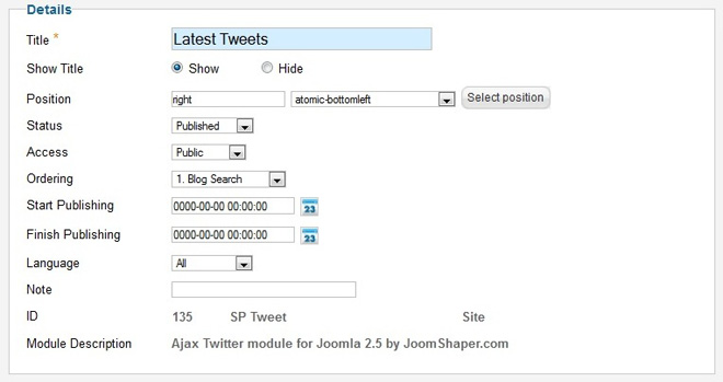 2] Put “Latest Tweets” as title and Position is right of atomic-bottomleft.