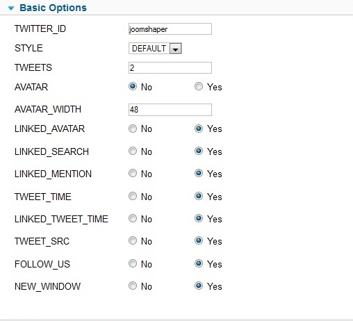 Put your twitter ID at “TWITTER_ID” field at basic options.