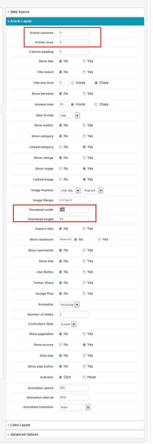 From "article Layout" option fixed article columns 3 amd row 1. Used image thumb width:150px and height:85px