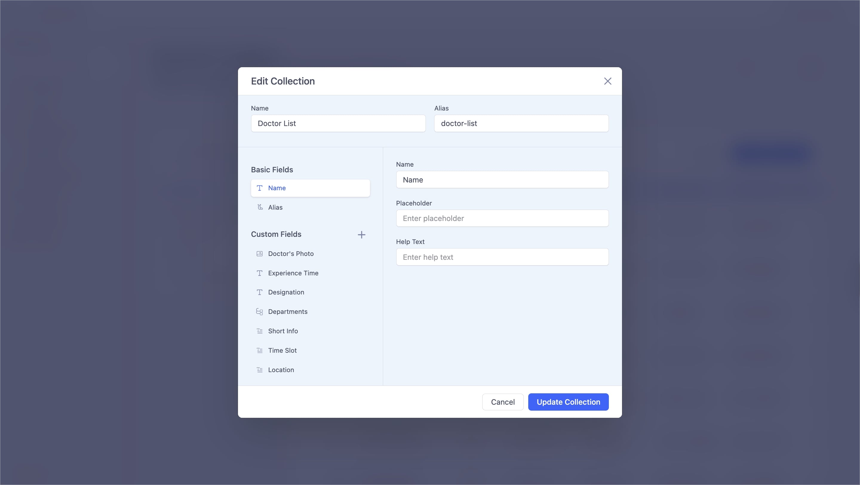 The screenshot given above shows the fields utilized in the Doctor's List collection.