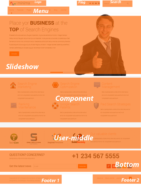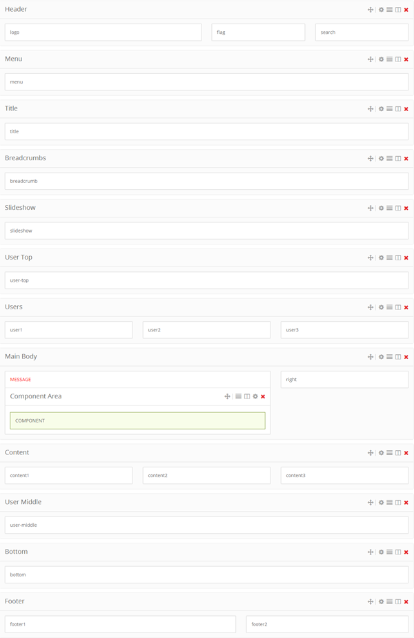 The screenshot below highlights the layout positions we useed in “Minima” template. By using this layout builder users will be able to create unlimited positions more then what we used in Corpora template. Our new & latest layout builder provide the opportunity to create positions where you want & no limitation for creating positions. From now its unlimited.