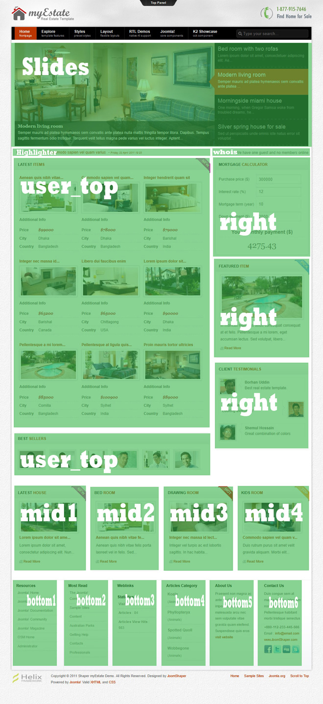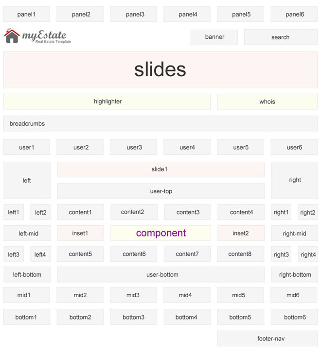 The screenshot below highlights the module positions available in “My Estate"” template.