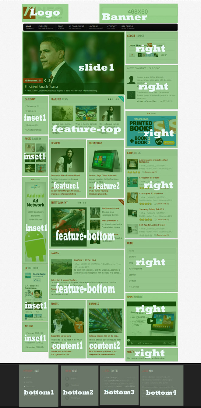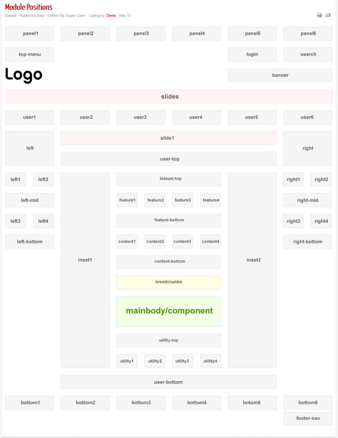 The screenshot below highlights the module positions available in “NEO” template.