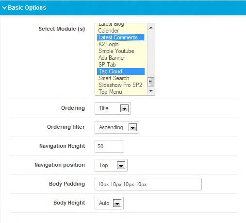 From Basic options “Latest Comment” , “Tag Cloud” have been selected.