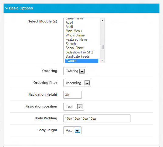 From Basic options modules have to be selected.