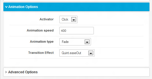 Animation type is Fade and Transition Effect is Quint.easeOut .