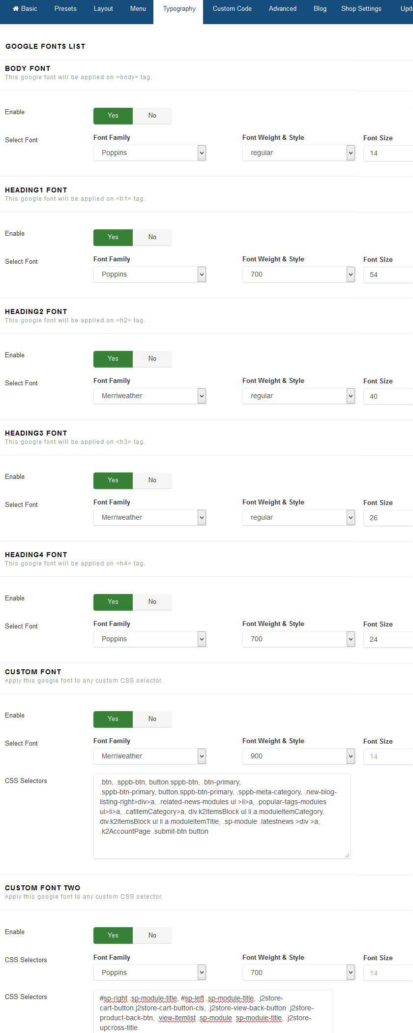 In template demo we used Google Font named: Poppins for almost whole demo site typography. Second font is Merriweather for headers.