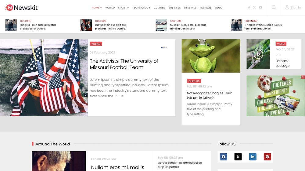 The following screenshot shows the layout of the Homepage (default variant) with a list of the addons used in the demo content configuration.
