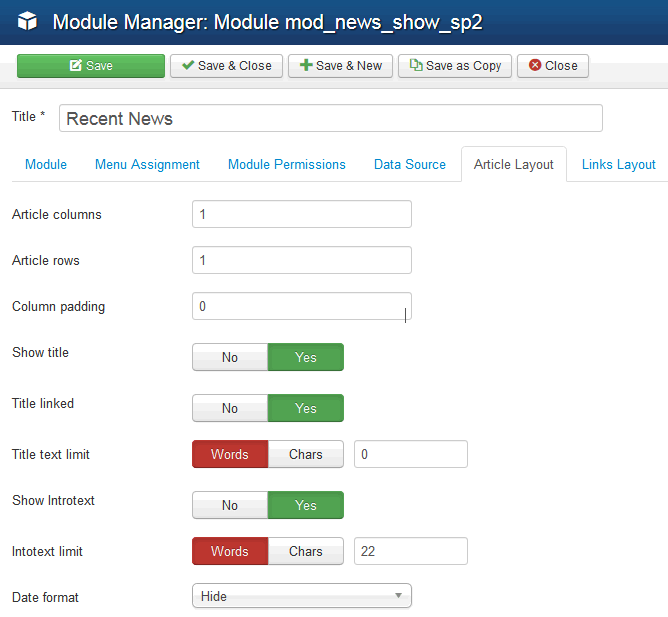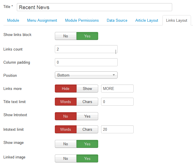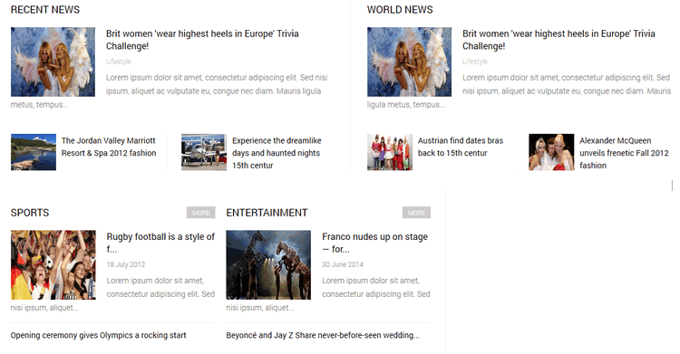 For those info blocks we used News Show SP2 module with different configuration and category of content. Also in this case we used K2 items as a source of content. But of course you can use default Joomla 3.x articles instead. The more important it's to add right settings in Article and Links Layout tabs.