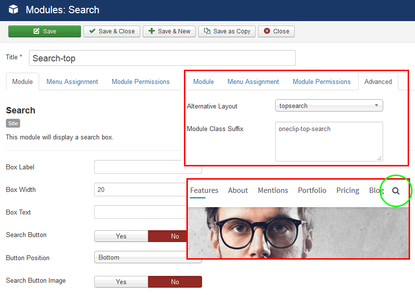 Search icon (next to menu) | OneClip - Documentation | JoomShaper