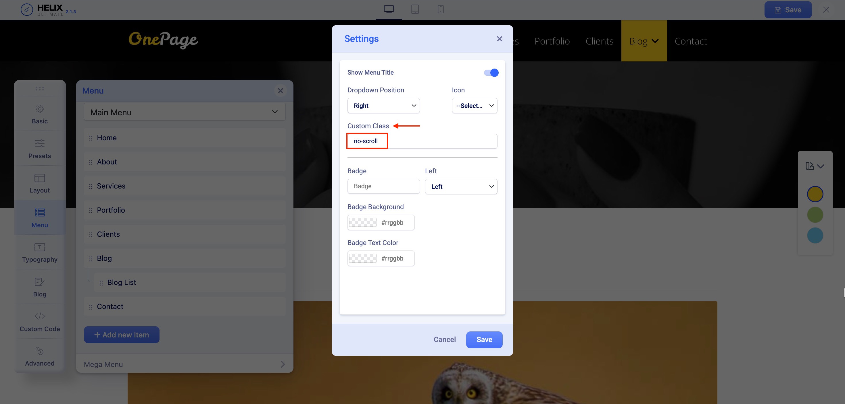 If you want to create links that are not scrolling links or if you need to add external links, you must assign a special CSS class to those menu items.