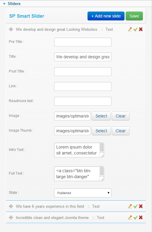 This awesome sideshow settings provide you to select the title, post title, readmore text and intro text. From here users will also able to select the image source. Here is another option for the thumb image also.