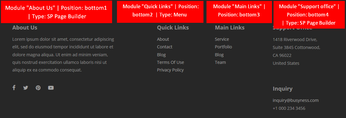 Bottom and Footer | Opus - Documentation | JoomShaper