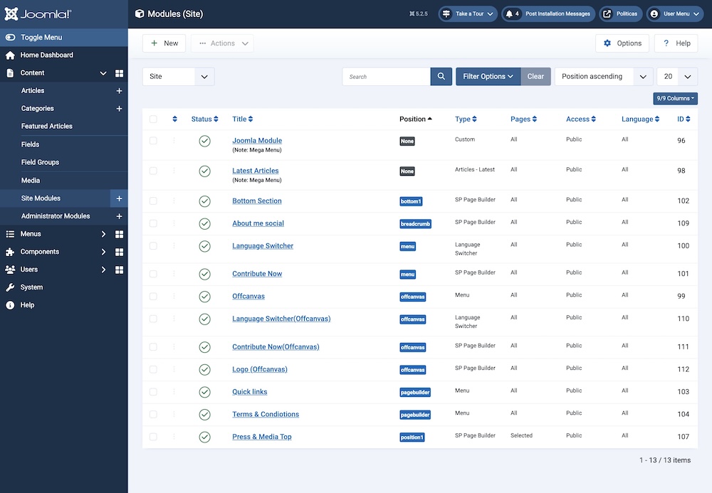 Apart from the few dozen extensions that are part of the quickstart installation (developed by Joomla and JoomShaper team), you can find thousands of additional extensions developed by third parties on the web. Most of these are listed on extensions.joomla.org, the Joomla Extensions Directory (or JED, as it is fondly called by the Joomla community). Anytime you can install additional modules, plugins or components. But remember the main rule: less is more, also in the security area.