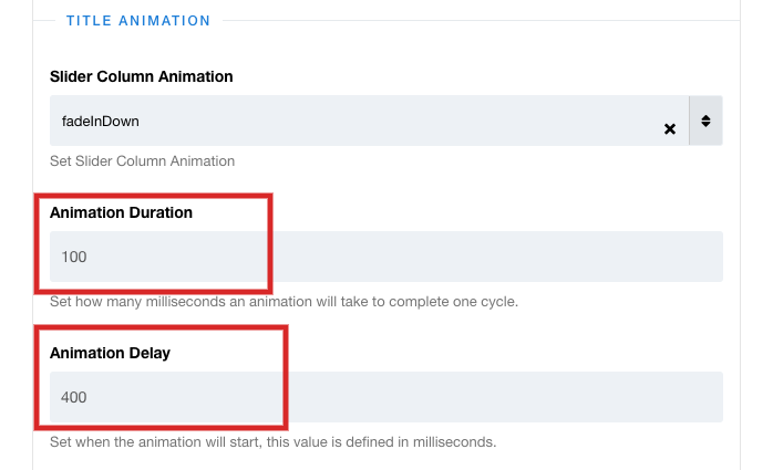In the title animation section of the slideshow addon you have to add all the animation related customization.