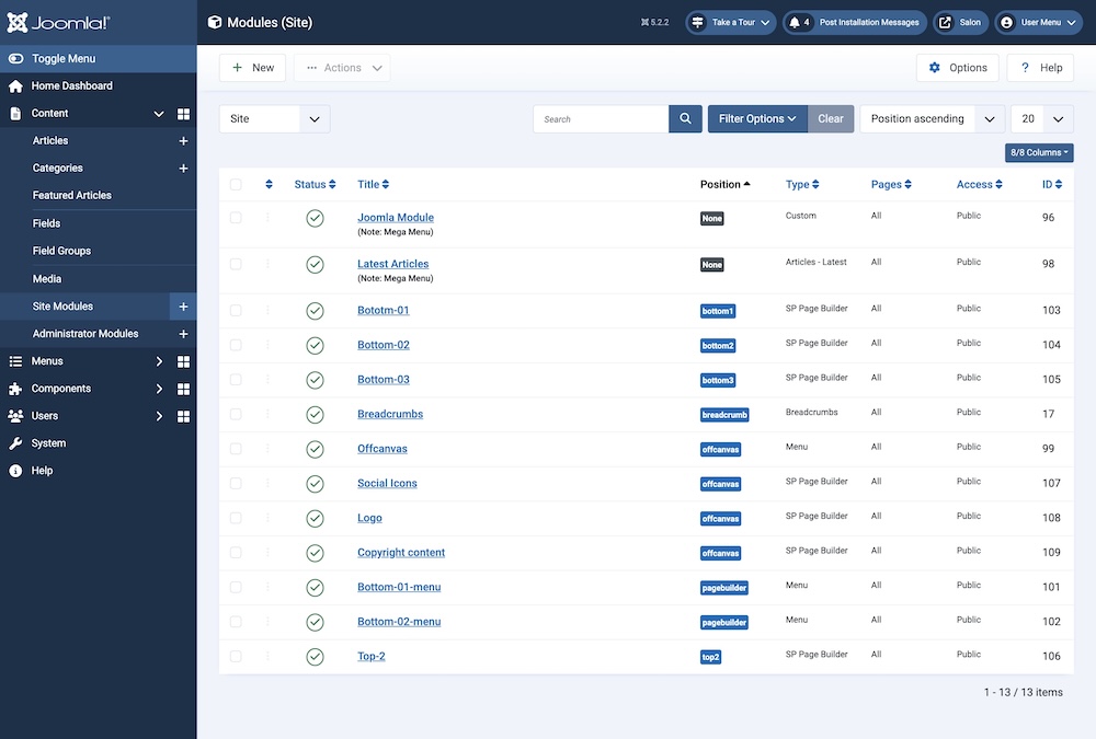Apart from the few dozen extensions that are part of the quickstart installation (developed by Joomla and the JoomShaper team), you can find thousands of additional extensions developed by third parties on the web. Most of these are listed on extensions.joomla.org, the Joomla Extensions Directory (or JED, as it is fondly called by the Joomla community). You can install additional modules, plugins, or components. But remember the main rule: less is more, also in the security area.