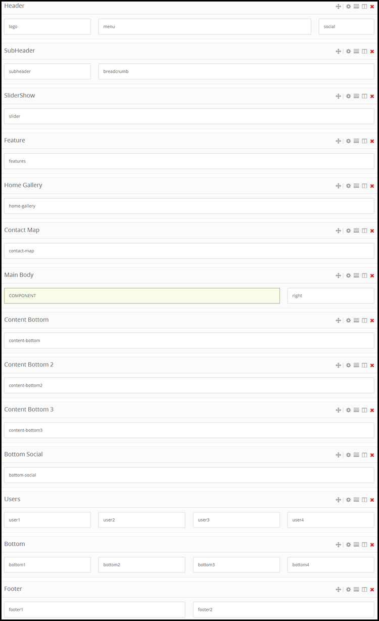 The screen-shot below highlights the layout positions we used in “Shooter” template. By using this layout builder users will be able to create unlimited positions more then before. Our new & latest layout builder provide the opportunity to create positions where you want & no limitation for creating positions. From now its unlimited.