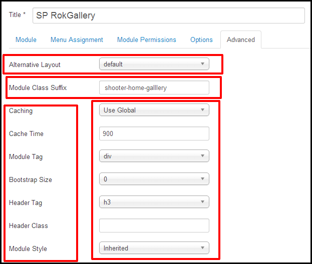 Here we select the Alternative laypout by Default. And select the suffix class by shooter-home-galllery. We also do other necessary settings here.