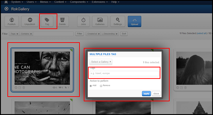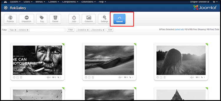 At first go to Component>RokGallery. Now upload your desire image and published it.
