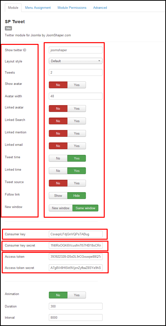 Here we do necessary setting for this module and also we provide the Consumer key, Consumer key secret, Access token ann access token secret here.