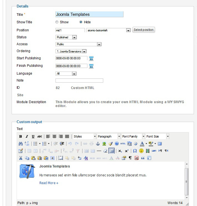 Setting for Joomla Template: