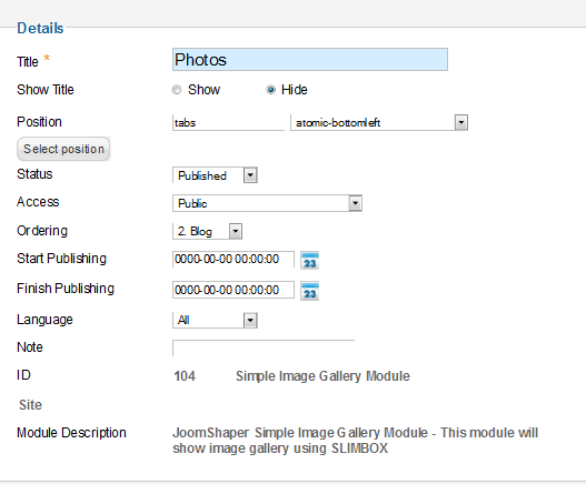 Position of this module is tabs.