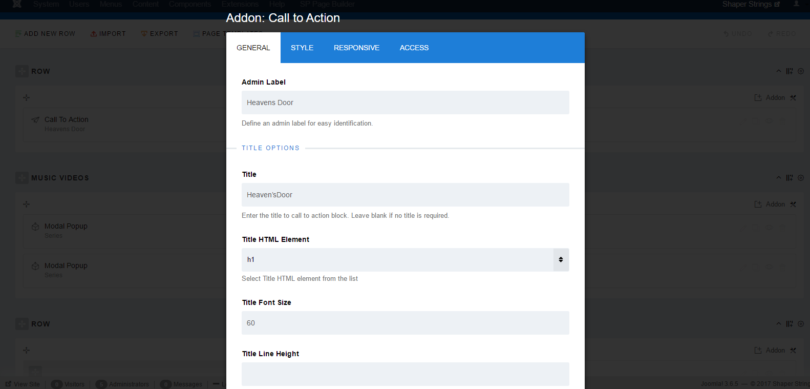 Default homepage and several subpages in Spectrum template demo were created using SP Page Builder Pro 2.x component. The following screenshot shows the layout of "Home" page (Default variant) with list of the addons used in the demo content configuration.