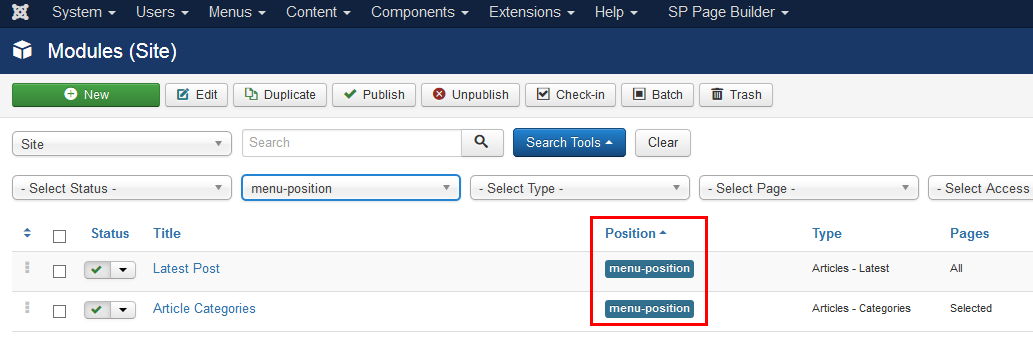 You can find those two modules in Module Manager - if you have installed QuickStart, if not, you can add new modules or change position of current ones. We used special module position named "menu-position" for menu purposes only.